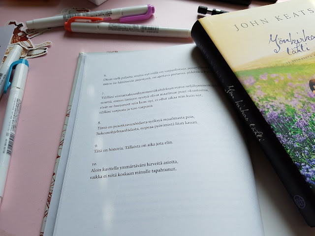 Alotin bloggaamisen 2012, kun minulla ei ollut konkreettista käsitystä siitä miten kirjan saa julki. Vaadittiin kuusi käsikirjoitusta, kolme vuotta kirjoittamisen opintoja, valtavasti koelukemista ja kirjoittamisen teorian pänttäämistä, mutta tammikuussa 2020 muutun virallisesti kirjoittajasta kirjailijaksi. Kirjoittamisbloggaaminen ei kuitenkaan ole tuntunut enää pitkään aikaan omalta jutulta, minkä vuoksi olen päättänyt sulkea tämän blogin.